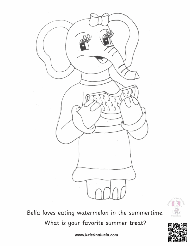 Coloring Drawing- Bella eating a Watermelon