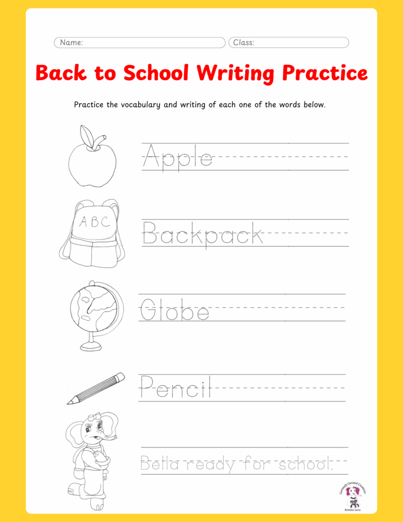Back to School Writing Practice with Bella Elephant
