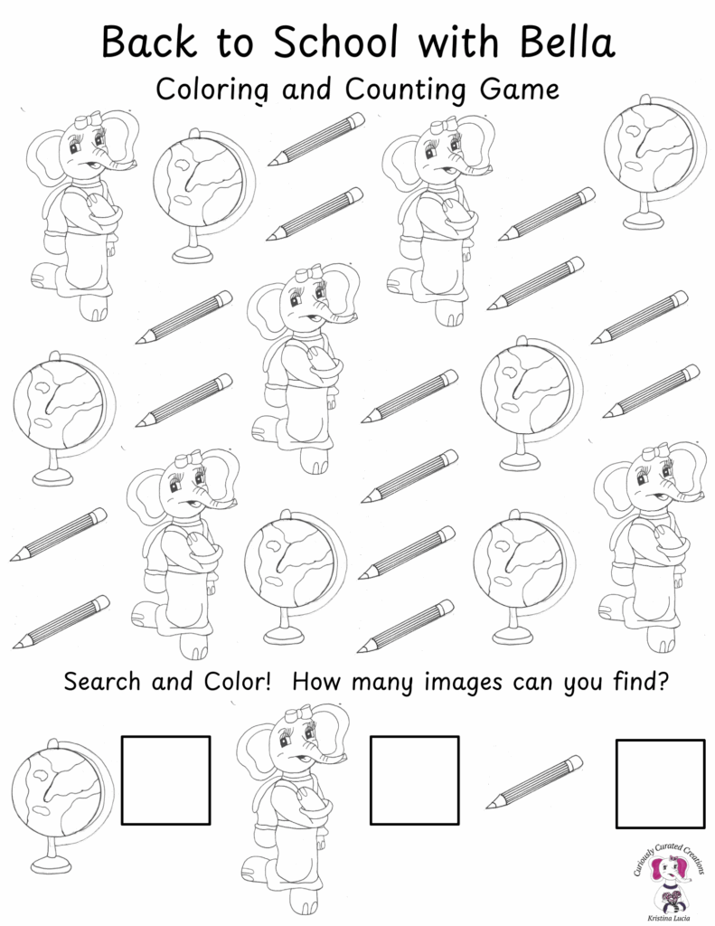 Back to School Coloring and Counting Game with Bella Elephant