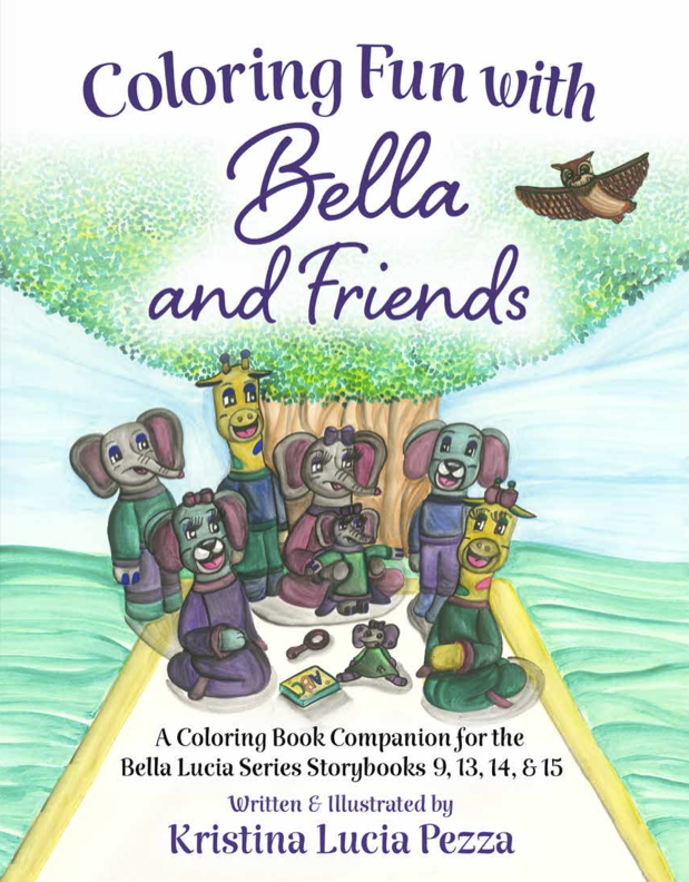 Bella’s Coloring Book features 48 coloring drawings with captions. These pages will provide hours of family fun for you and your kiddo!